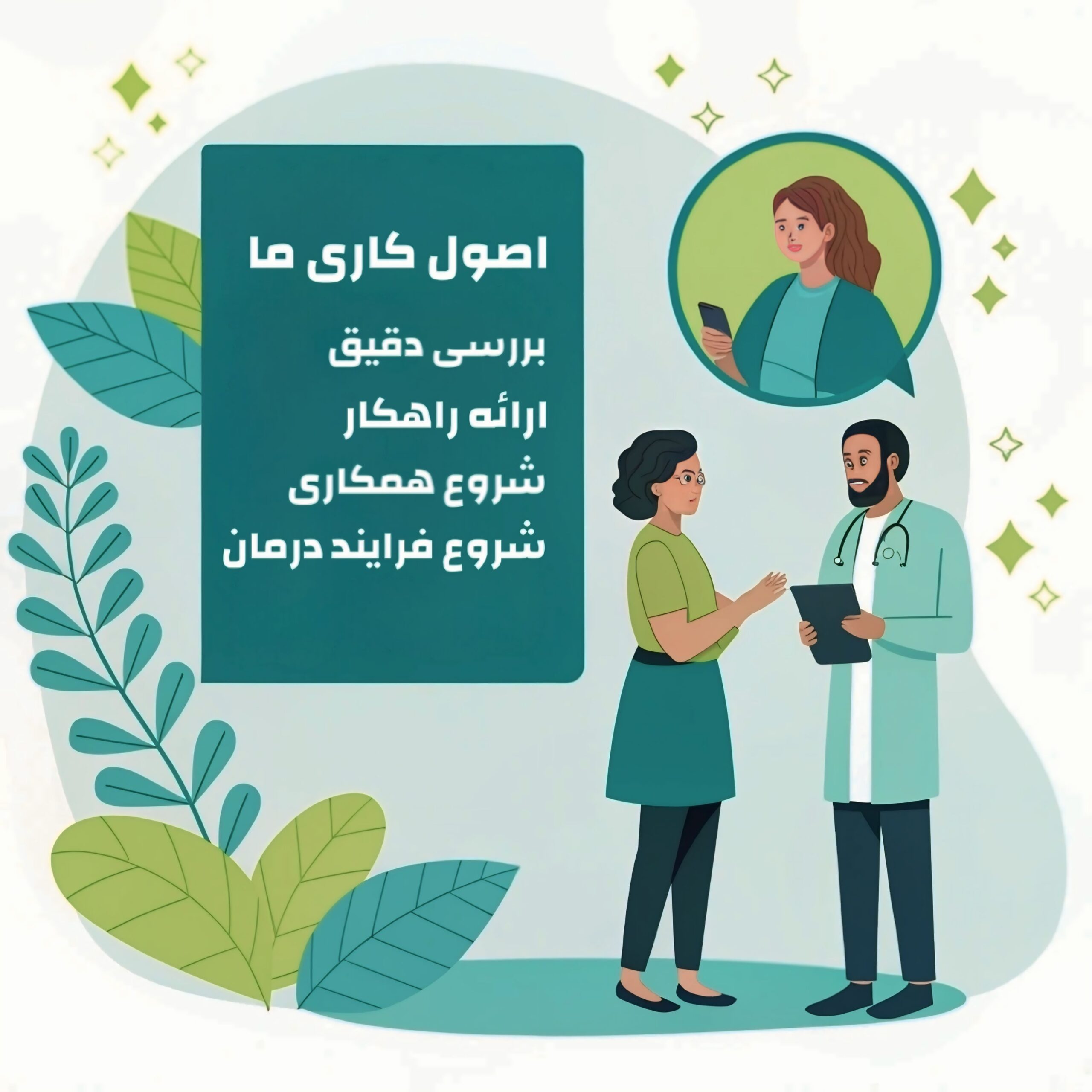 بررسی دقیق ، ارائه راهکار، شروع همراهی و شروع فرآیند درمان